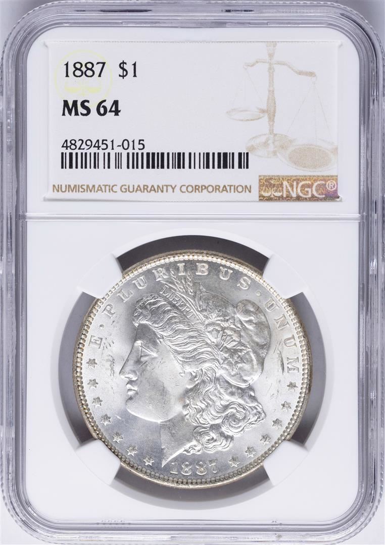 One 1887 $1 Morgan Silver Dollar Coin NGC MS64. NGC Certified.