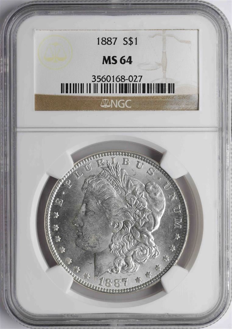 One 1887 $1 Morgan Silver Dollar Coin NGC MS64. NGC Certified.