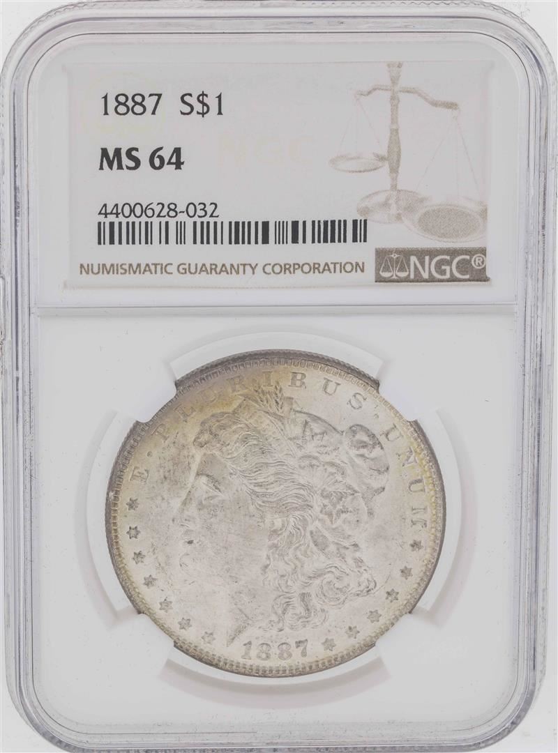 One 1887 $1 Morgan Silver Dollar Coin NGC MS64. NGC Certified.