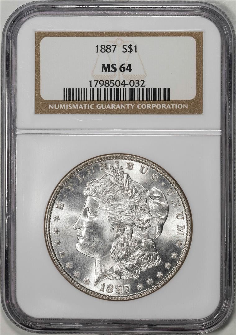 One 1887 $1 Morgan Silver Dollar Coin NGC MS64. NGC Certified.