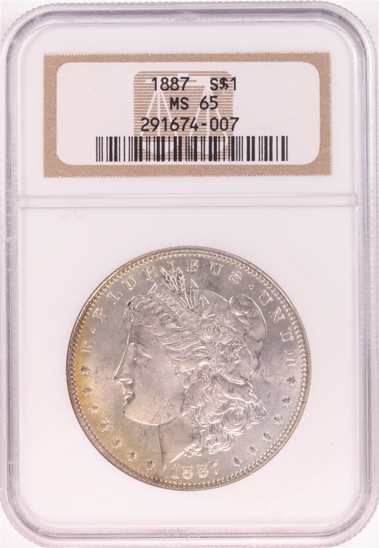 1887 $1 Morgan Silver Dollar Coin NGC MS65 Nice Toning Old Holder