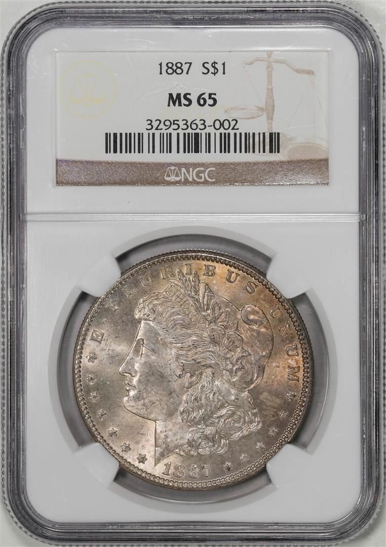 One 1887 $1 Morgan Silver Dollar Coin NGC MS65 Nice Toning. NGC Certified.