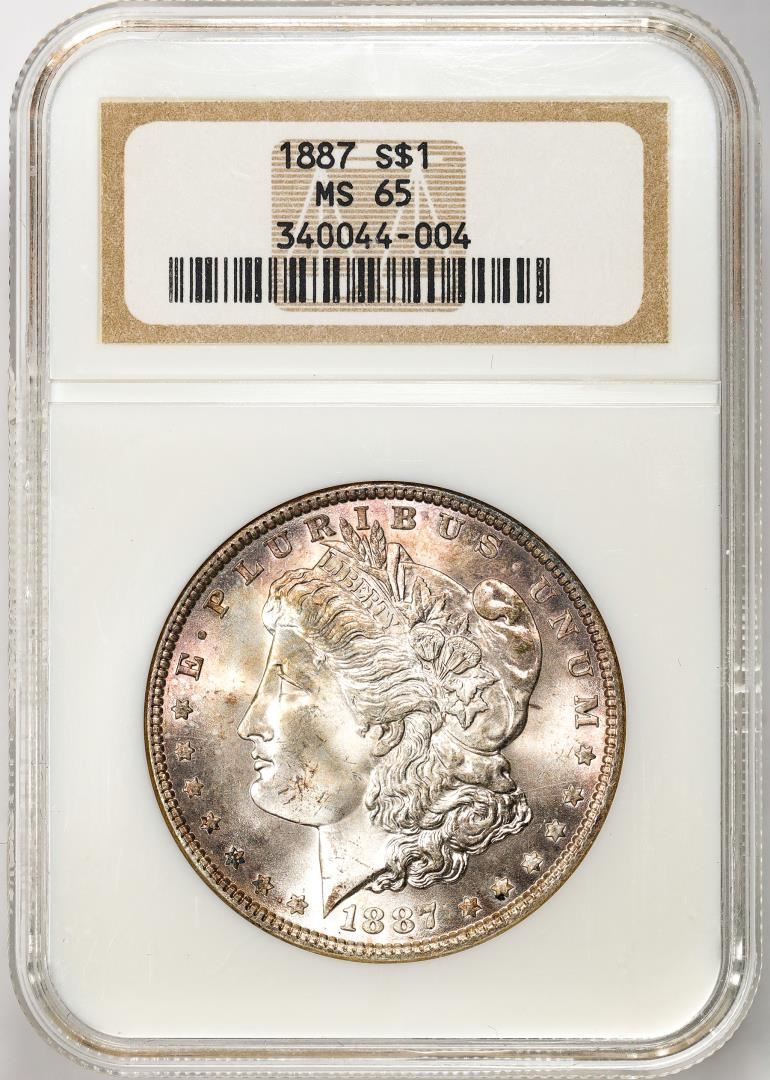 One 1887 $1 Morgan Silver Dollar Coin NGC MS65 Nice Toning. NGC Certified.