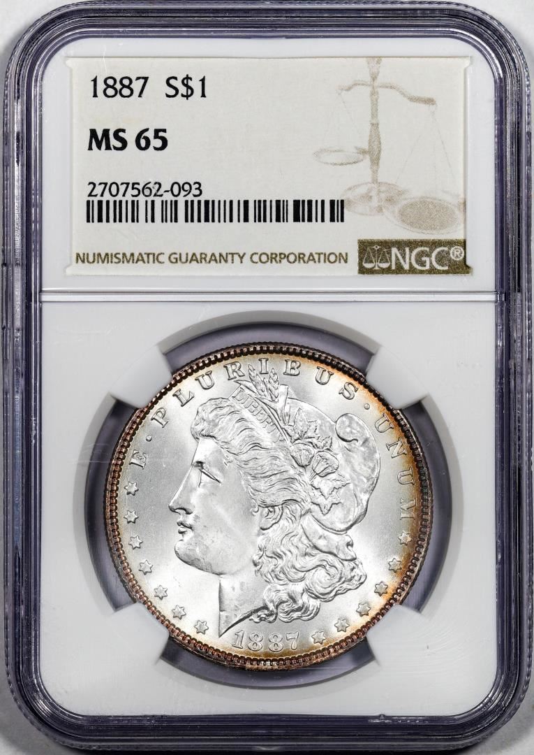 One 1887 $1 Morgan Silver Dollar Coin NGC MS65 Rim Toning.