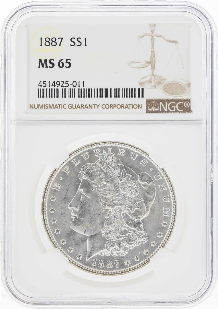 One 1887 $1 Morgan Silver Dollar Coin NGC MS65. NGC Certified.