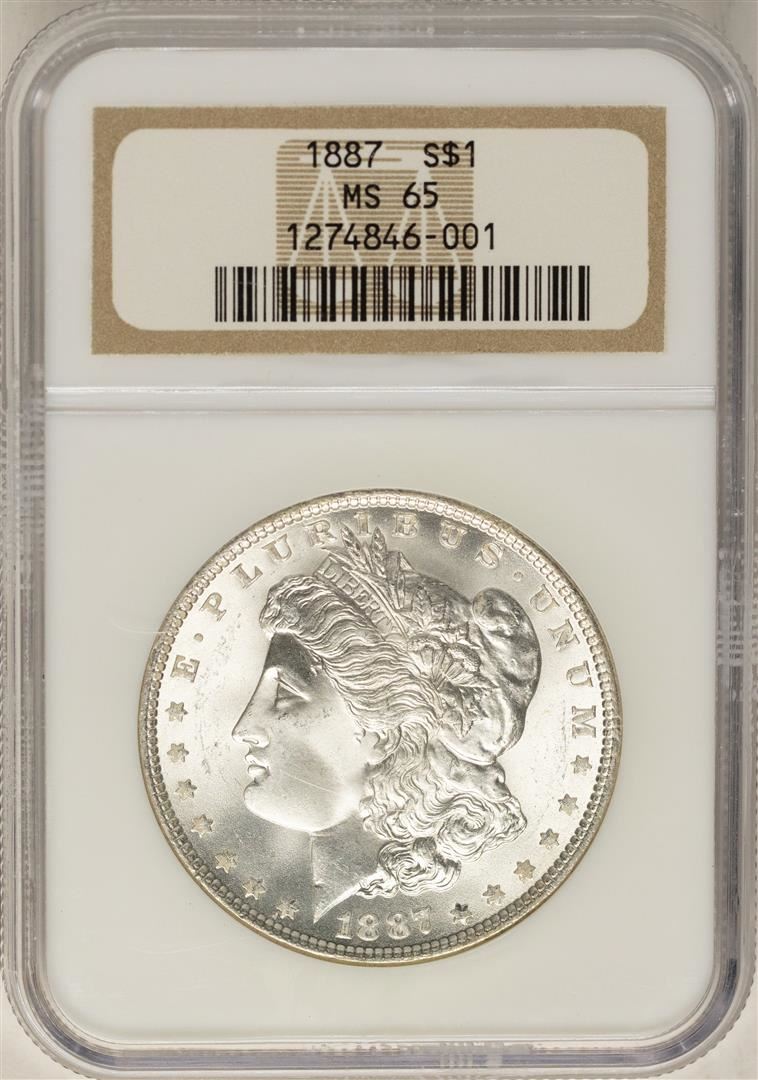 One 1887 $1 Morgan Silver Dollar Coin NGC MS65. NGC Certified.