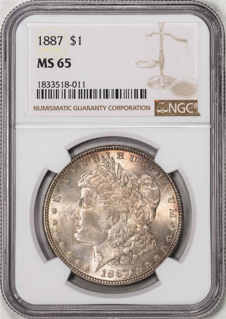 One 1887 $1 Morgan Silver Dollar Coin NGC MS65. NGC Certified.
