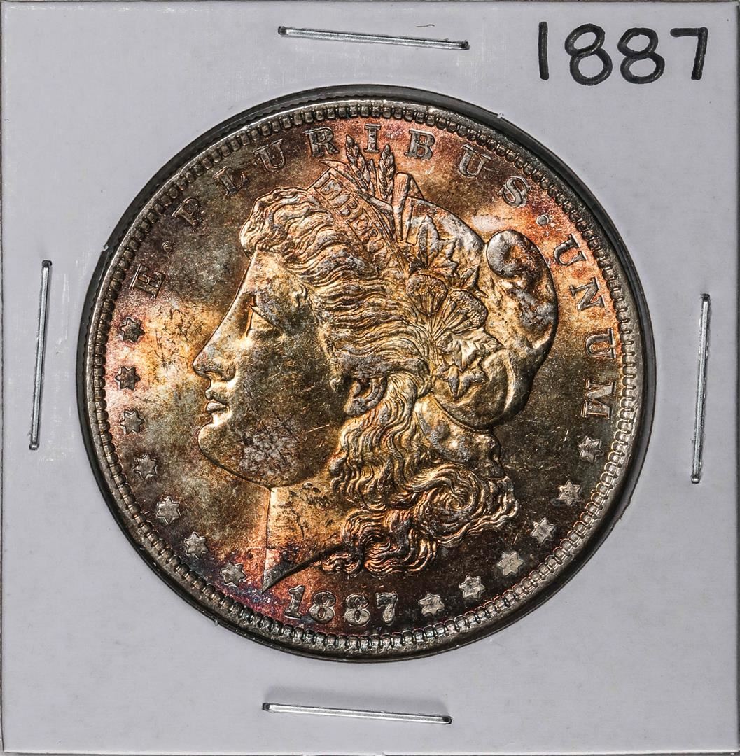 One 1887 $1 Morgan Silver Dollar Coin Nice Color.