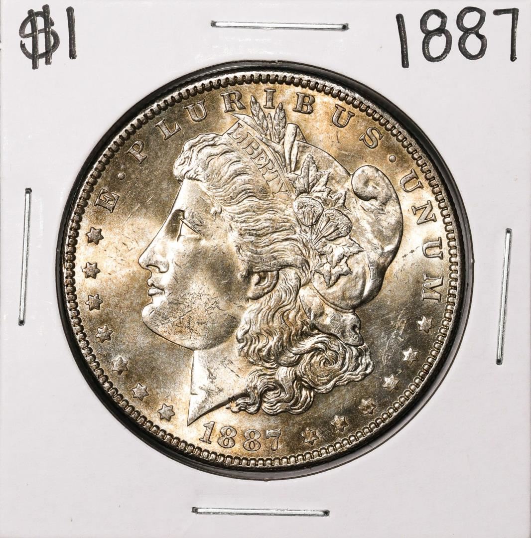 One 1887 $1 Morgan Silver Dollar Coin Nice Toning.