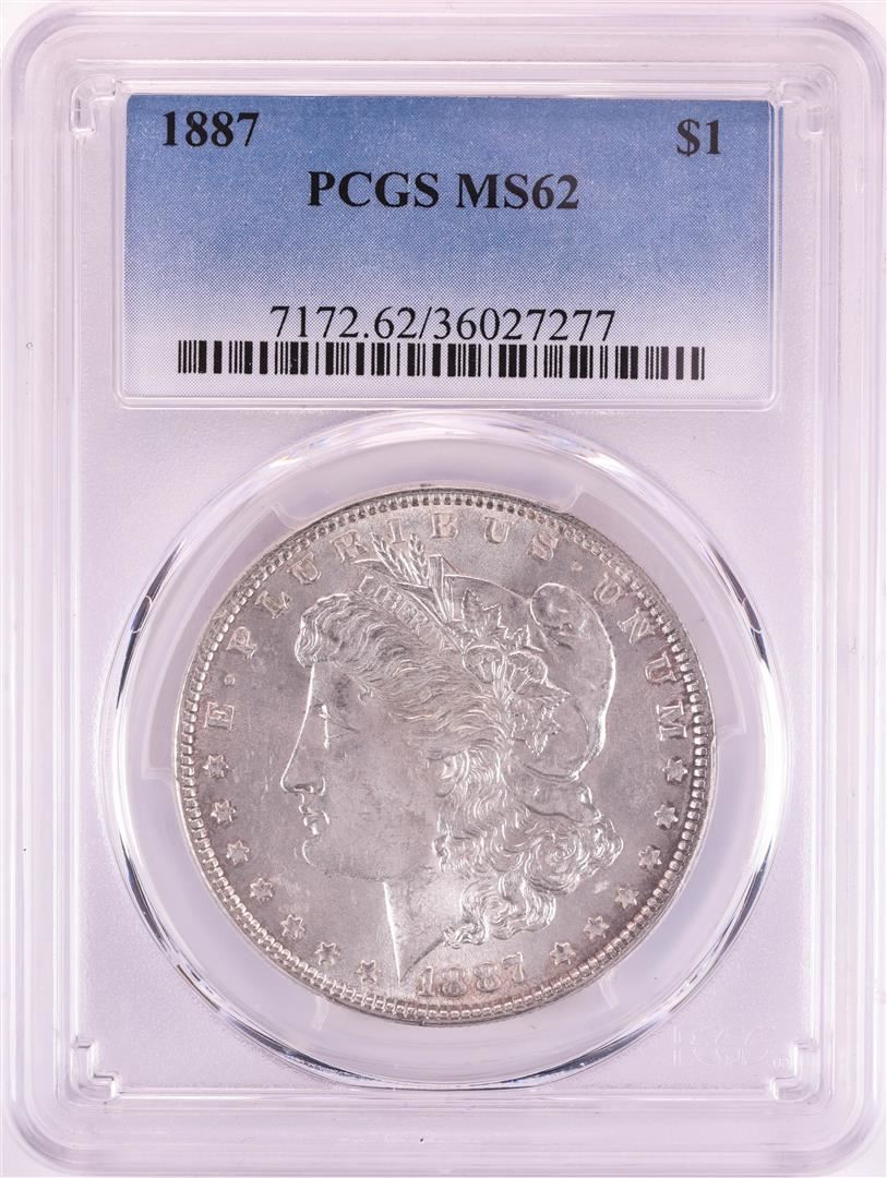 One 1887 $1 Morgan Silver Dollar Coin PCGS MS62. PCGS Graded.