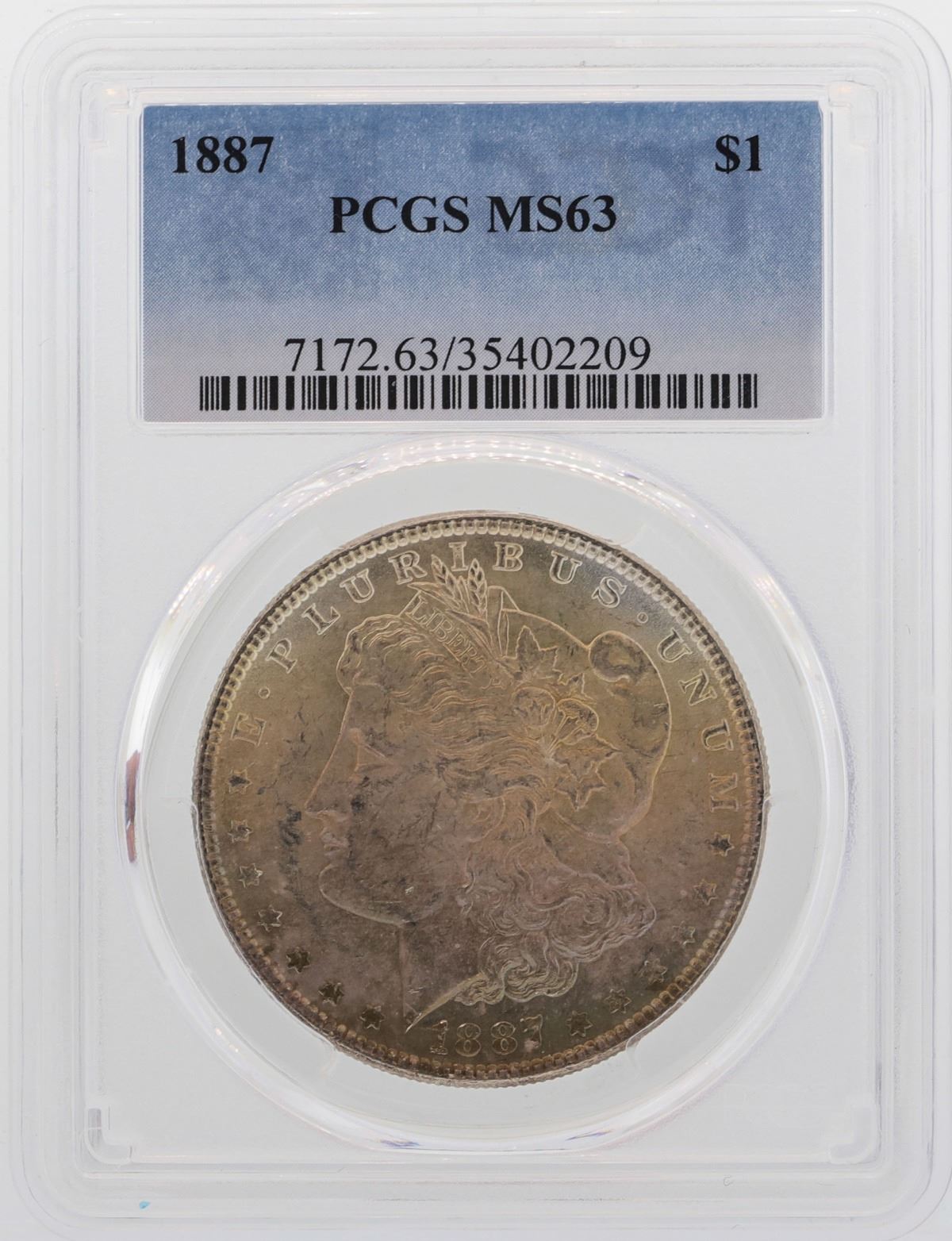 One 1887 $1 Morgan Silver Dollar Coin PCGS MS63 Amazing Toning.