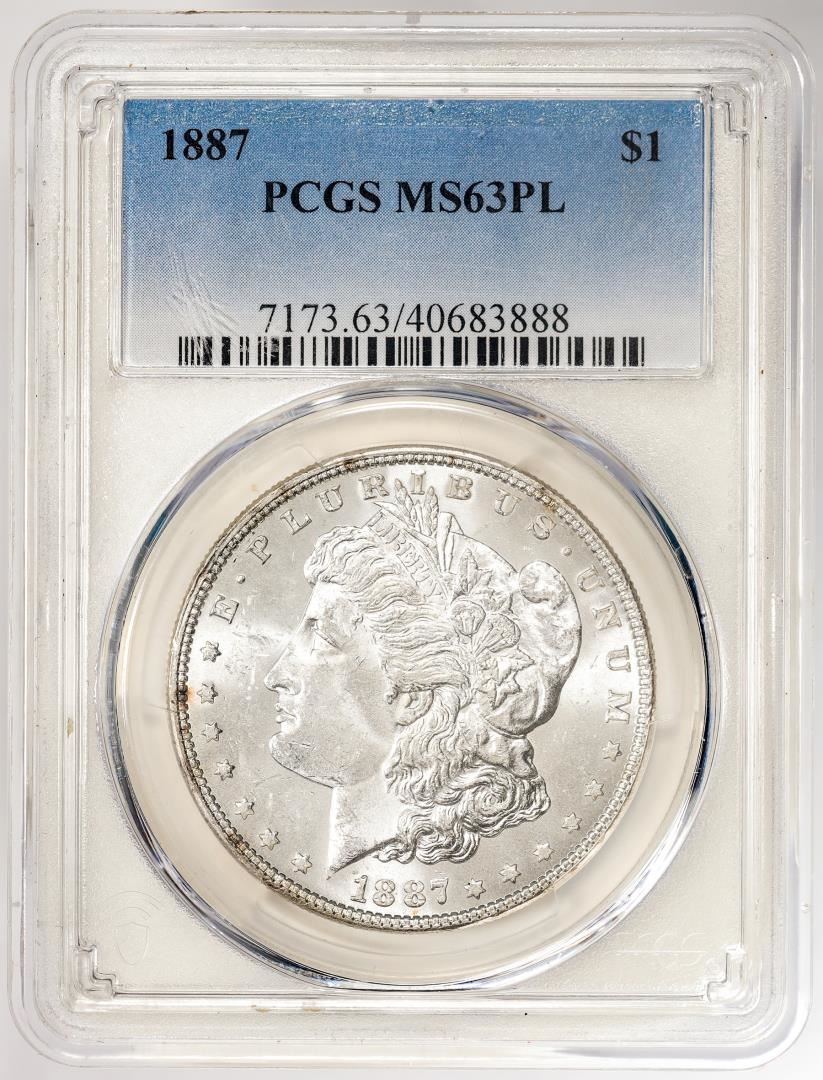 One 1887 $1 Morgan Silver Dollar Coin PCGS MS63PL. PCGS Graded.
