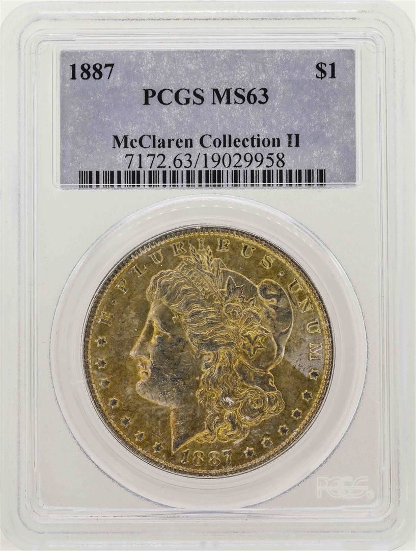 One 1887 $1 Morgan Silver Dollar Coin PCGS MS63. PCGS Graded.