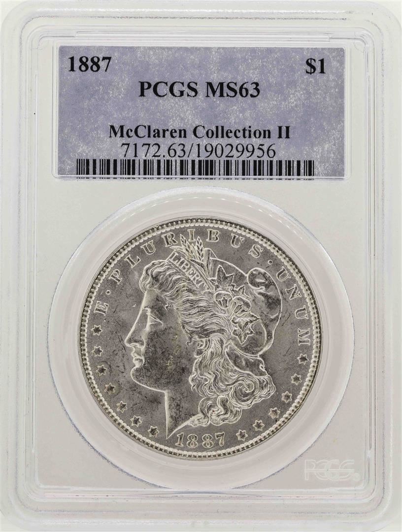 One 1887 $1 Morgan Silver Dollar Coin PCGS MS63. PCGS Graded.