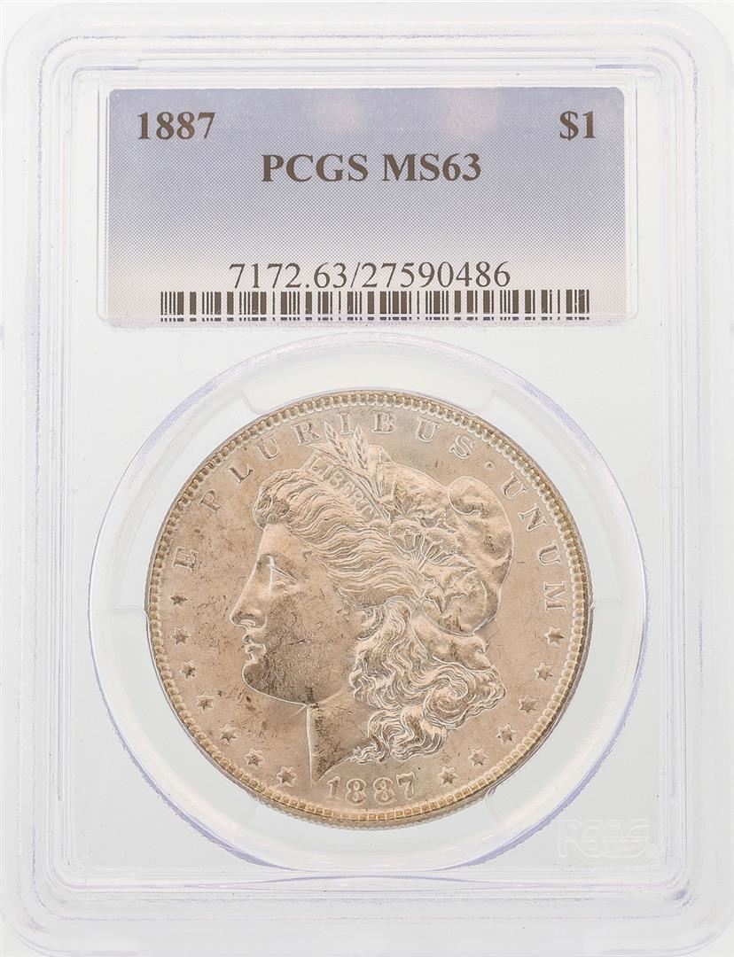 One 1887 $1 Morgan Silver Dollar Coin PCGS MS63. PCGS Graded.