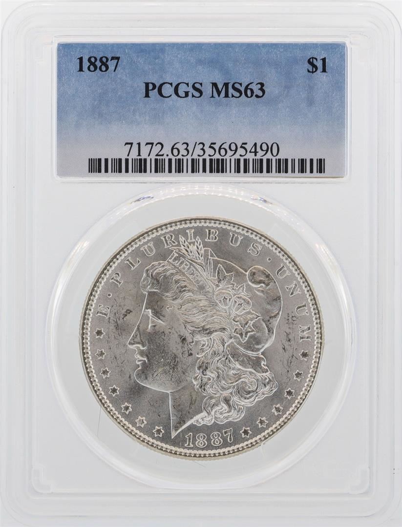 One 1887 $1 Morgan Silver Dollar Coin PCGS MS63. PCGS Graded.