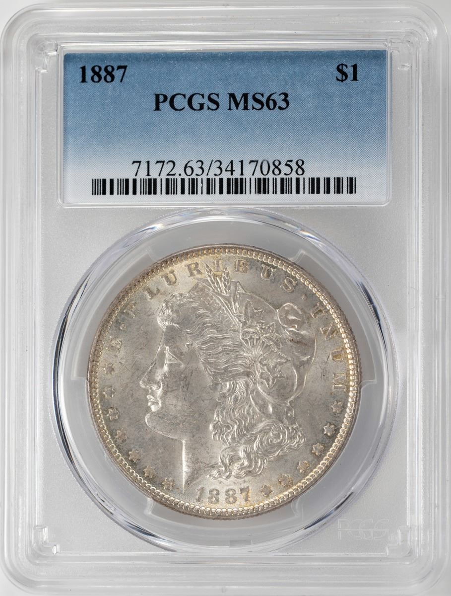 One 1887 $1 Morgan Silver Dollar Coin PCGS MS63.