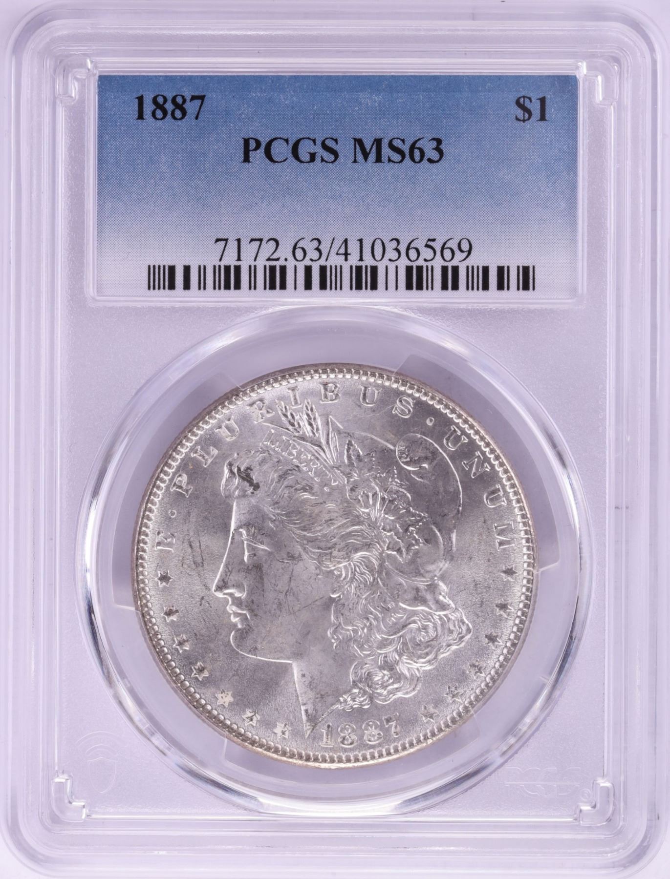 One 1887 $1 Morgan Silver Dollar Coin PCGS MS63.