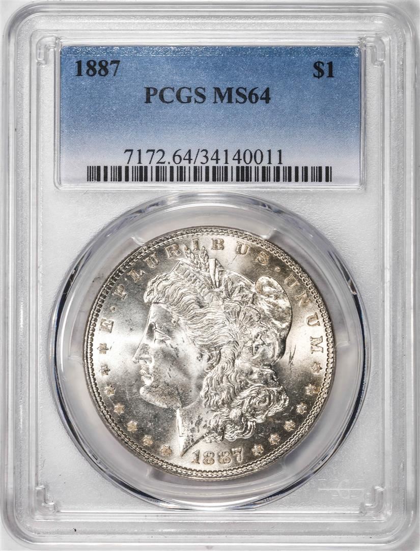 One 1887 $1 Morgan Silver Dollar Coin PCGS MS64 Nice Color. PCGS Graded.