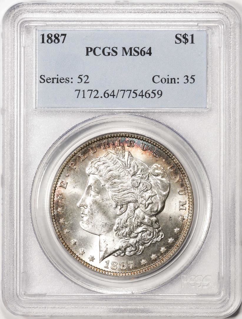 One 1887 $1 Morgan Silver Dollar Coin PCGS MS64 Nice Toning. PCGS Graded.