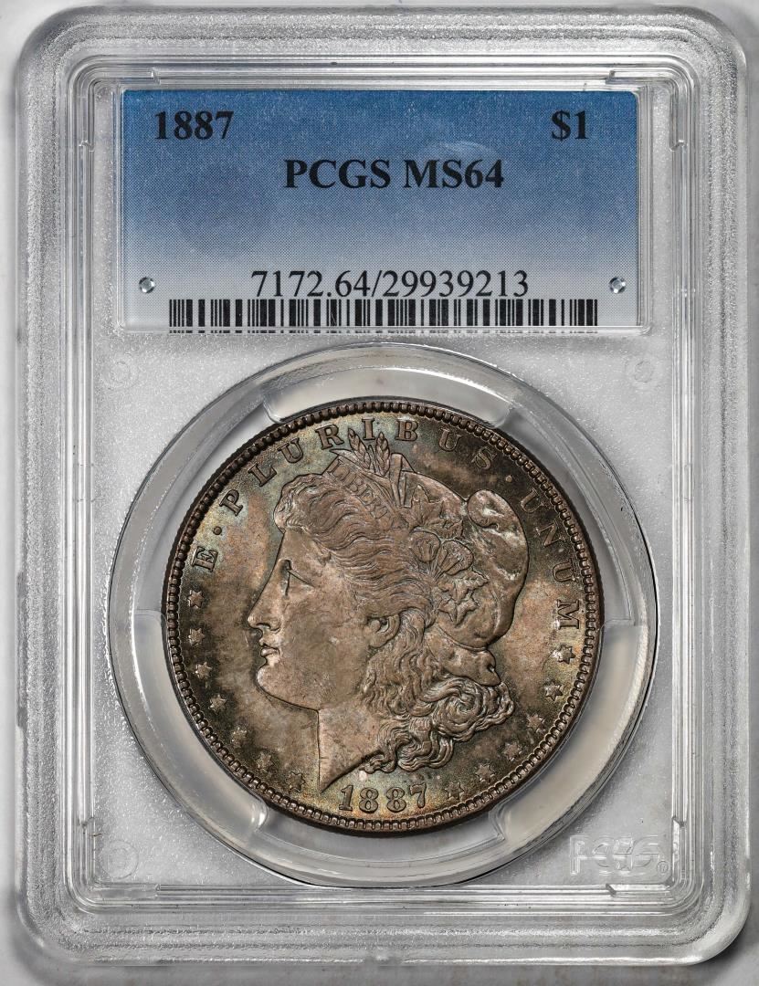 One 1887 $1 Morgan Silver Dollar Coin PCGS MS64 Nice Toning. PCGS Graded.