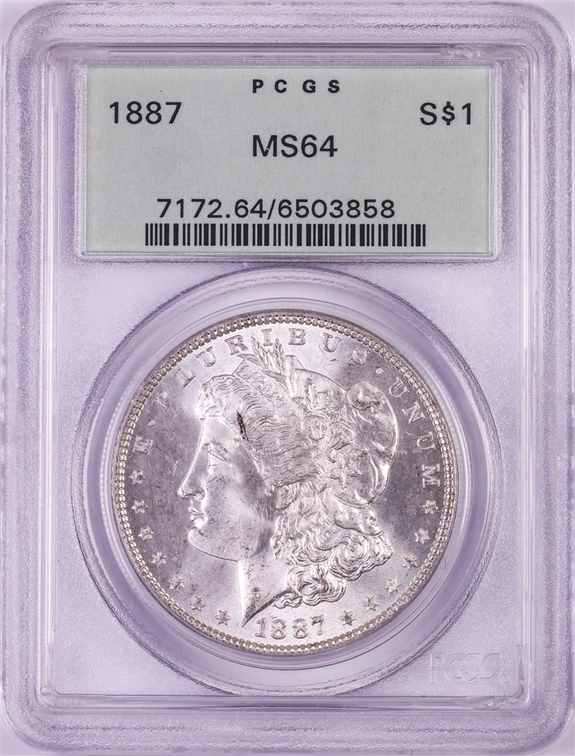 One 1887 $1 Morgan Silver Dollar Coin PCGS MS64 Old Green Holder. PCGS Graded.