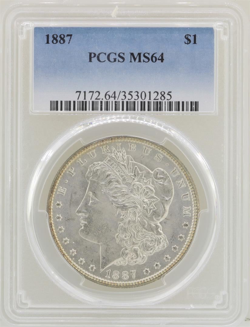 One 1887 $1 Morgan Silver Dollar Coin PCGS MS64. PCGS Graded.