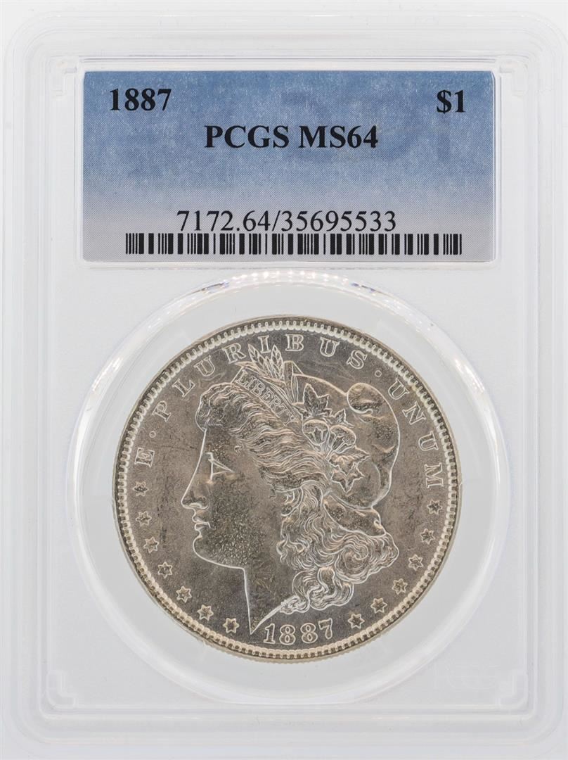 One 1887 $1 Morgan Silver Dollar Coin PCGS MS64. PCGS Certified.