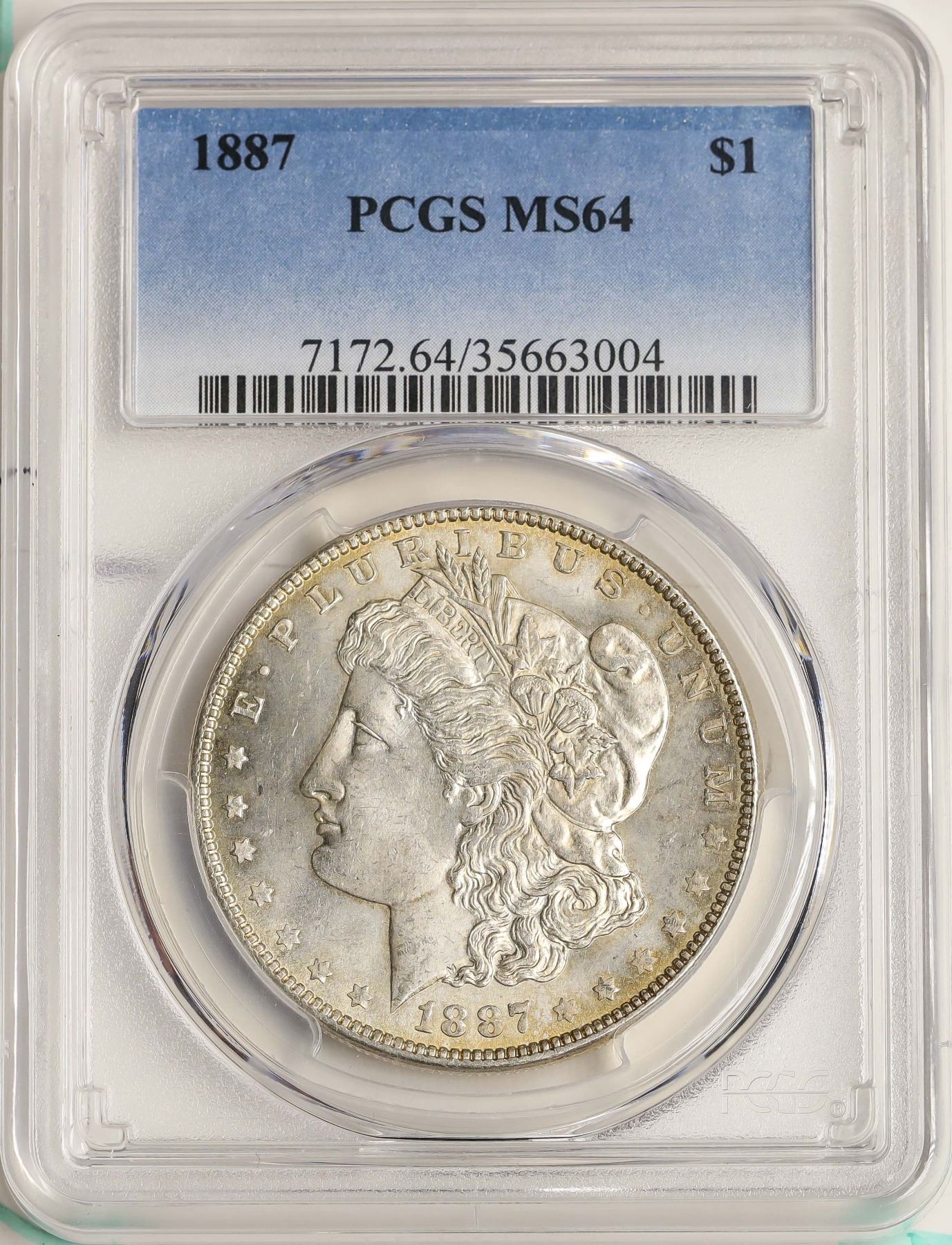 One 1887 $1 Morgan Silver Dollar Coin PCGS MS64.
