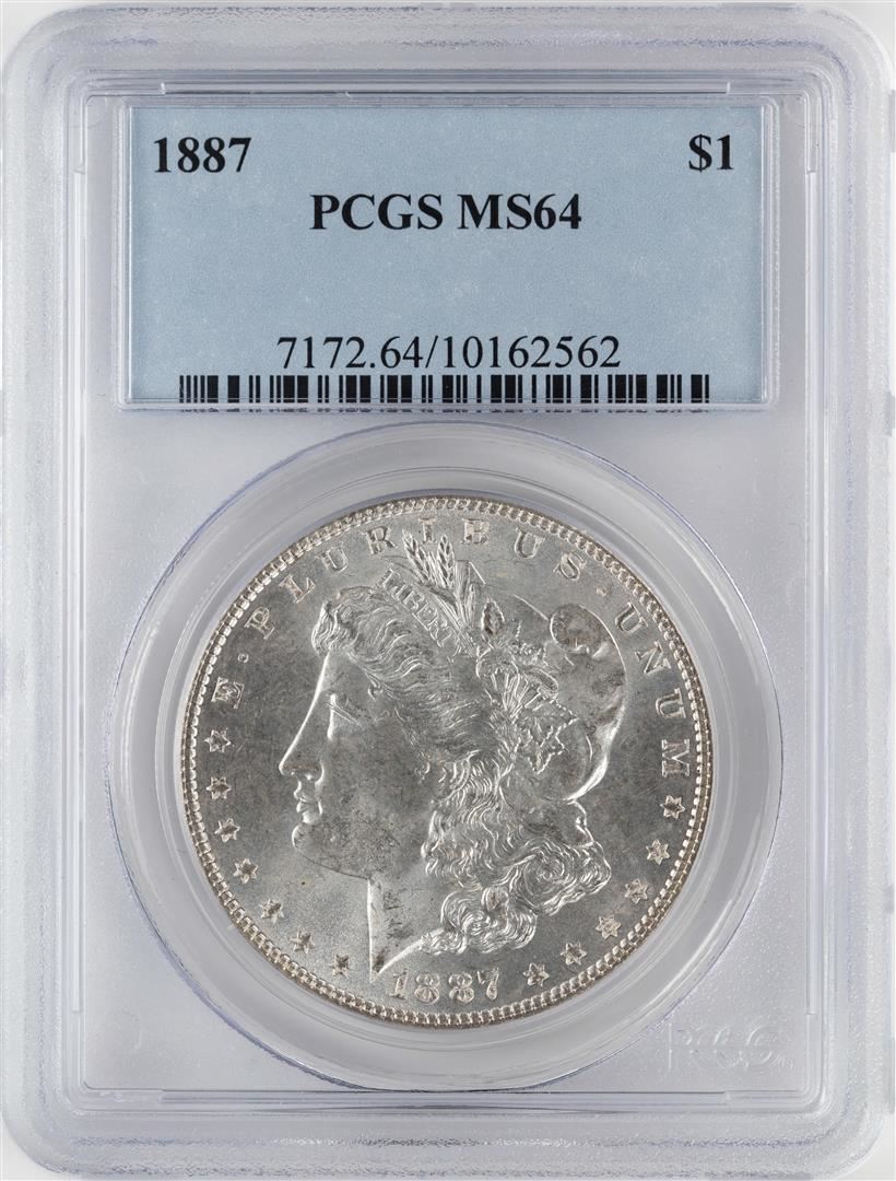 One 1887 $1 Morgan Silver Dollar Coin PCGS MS64. PCGS Graded.