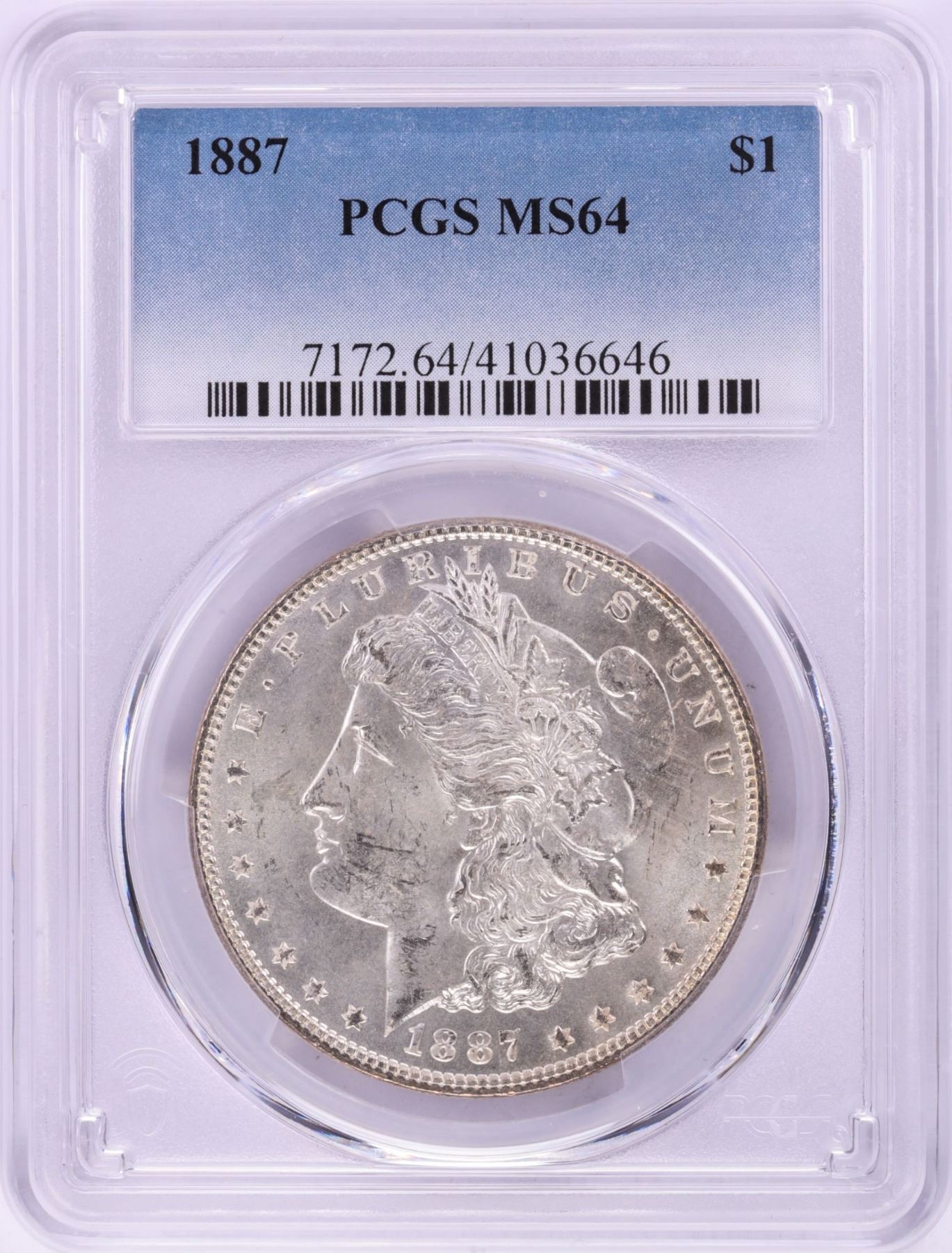 One 1887 $1 Morgan Silver Dollar Coin PCGS MS64.