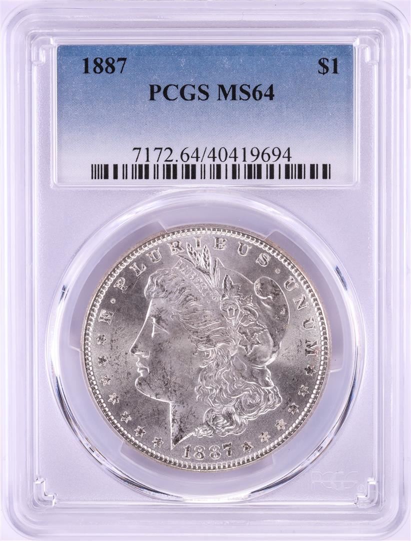 One 1887 $1 Morgan Silver Dollar Coin PCGS MS64. PCGS Graded.