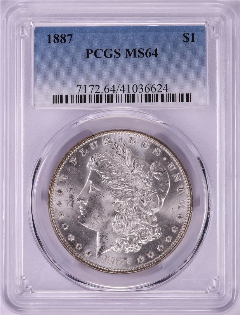 One 1887 $1 Morgan Silver Dollar Coin PCGS MS64. PCGS Graded.