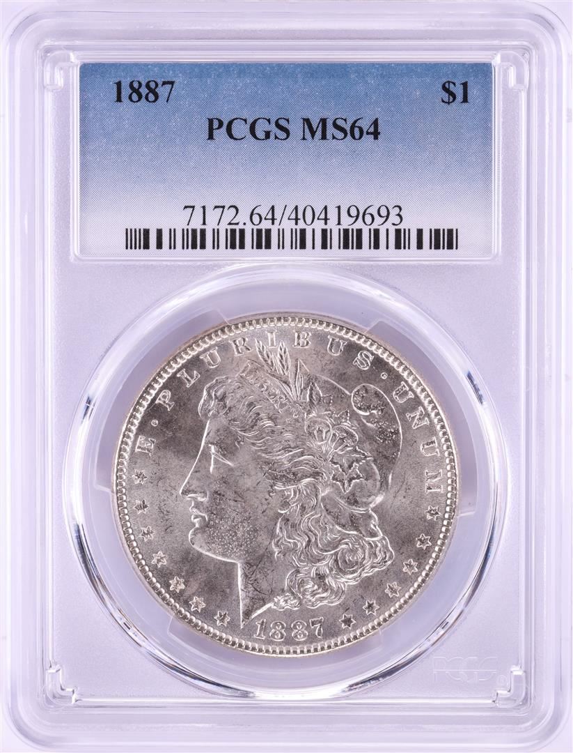 One 1887 $1 Morgan Silver Dollar Coin PCGS MS64. PCGS Graded.