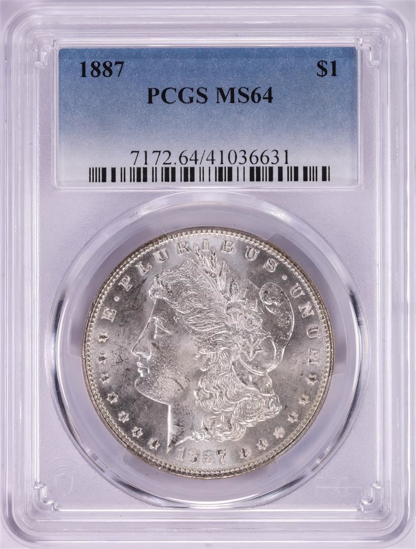 One 1887 $1 Morgan Silver Dollar Coin PCGS MS64. PCGS Graded.