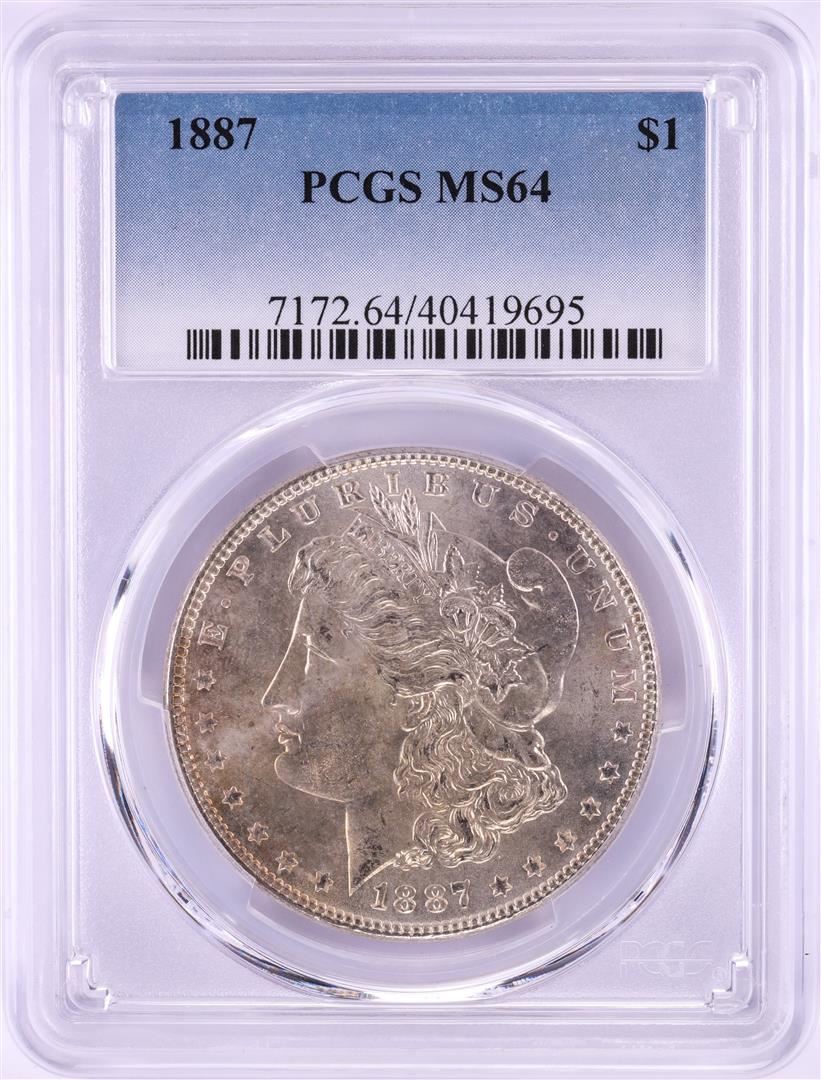 One 1887 $1 Morgan Silver Dollar Coin PCGS MS64. PCGS Graded.