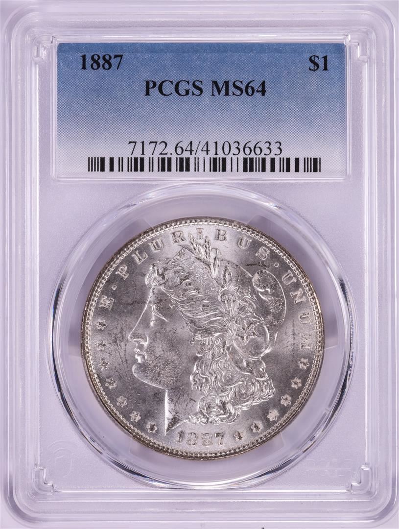 One 1887 $1 Morgan Silver Dollar Coin PCGS MS64. PCGS Graded.