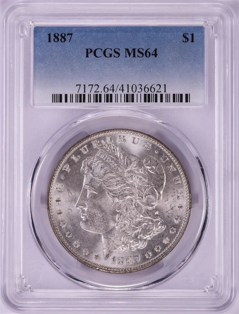 One 1887 $1 Morgan Silver Dollar Coin PCGS MS64. PCGS Graded.
