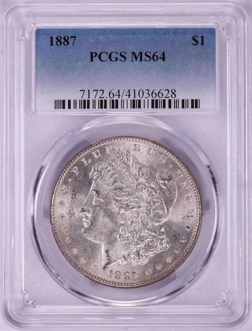 One 1887 $1 Morgan Silver Dollar Coin PCGS MS64. PCGS Graded.