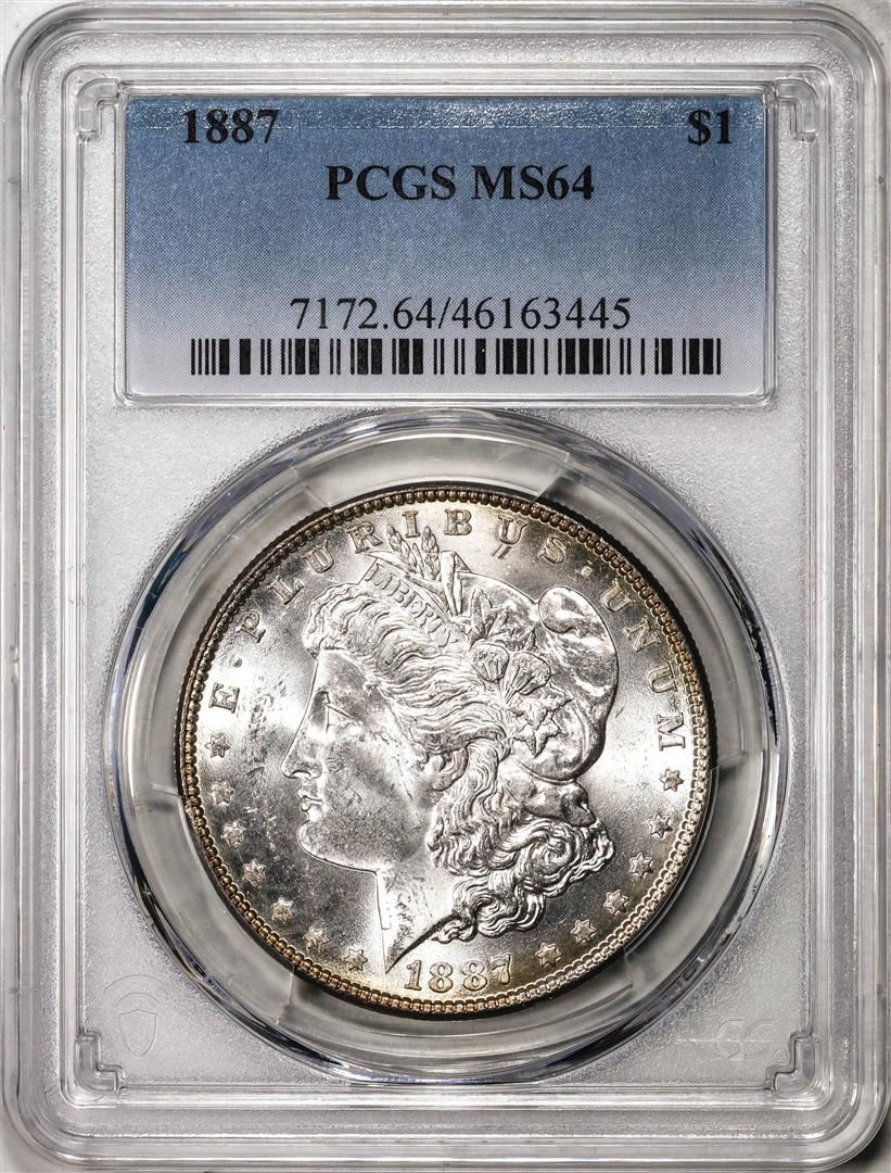 One 1887 $1 Morgan Silver Dollar Coin PCGS MS64. PCGS Graded.