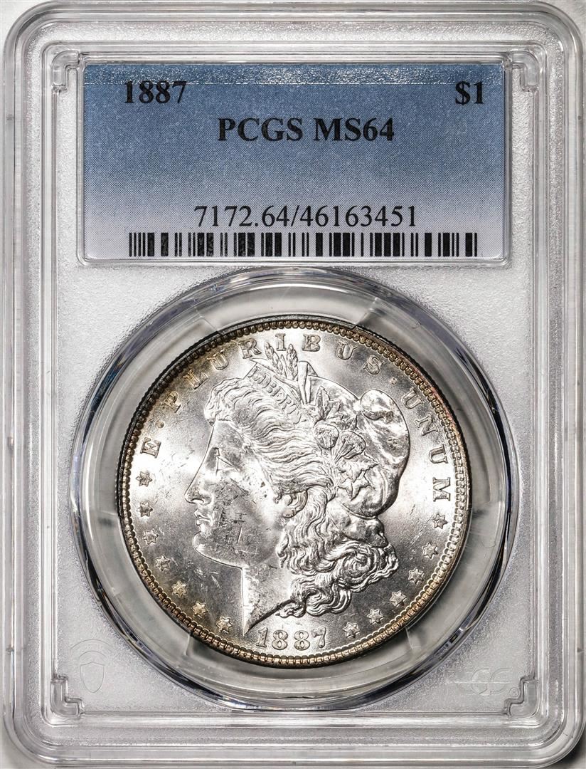 One 1887 $1 Morgan Silver Dollar Coin PCGS MS64. PCGS Graded.