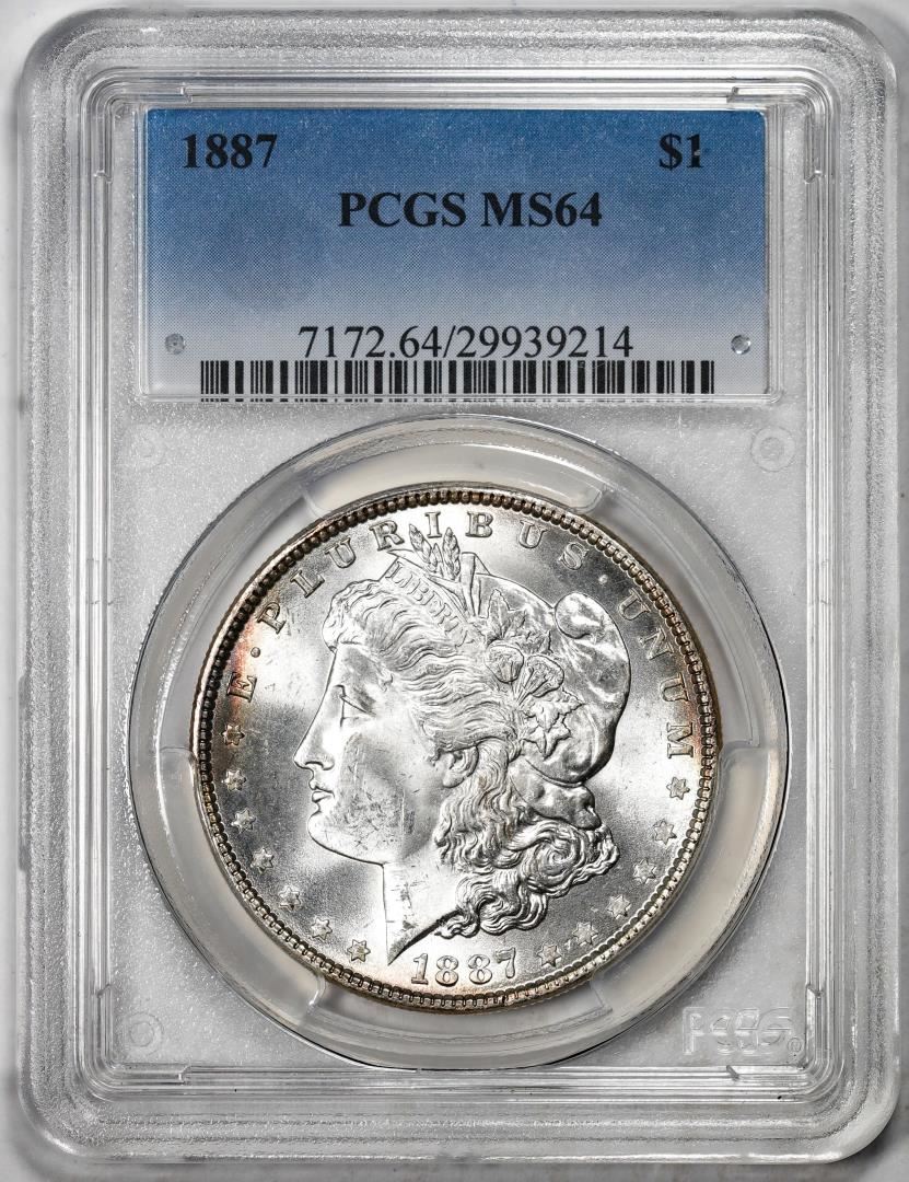 One 1887 $1 Morgan Silver Dollar Coin PCGS MS64. PCGS Graded.