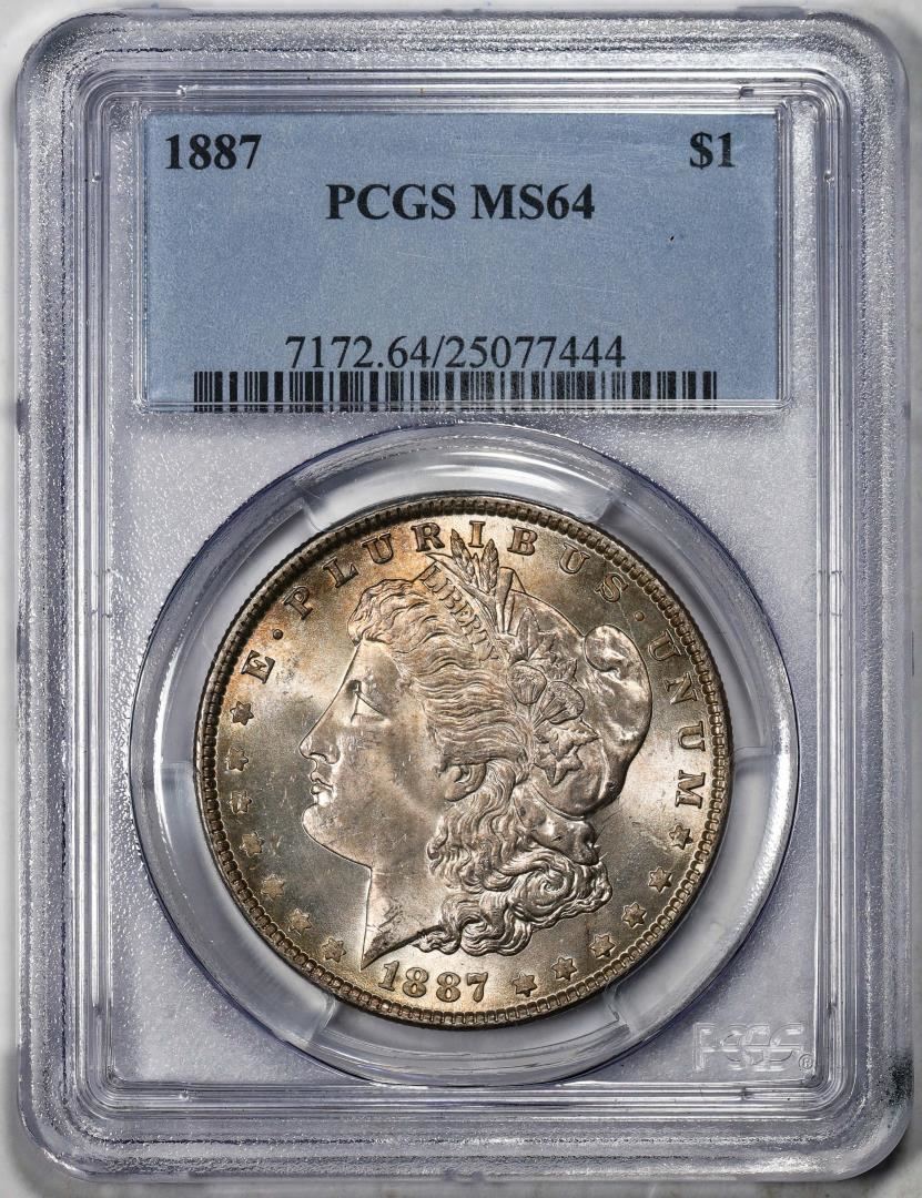 One 1887 $1 Morgan Silver Dollar Coin PCGS MS64. PCGS Graded.
