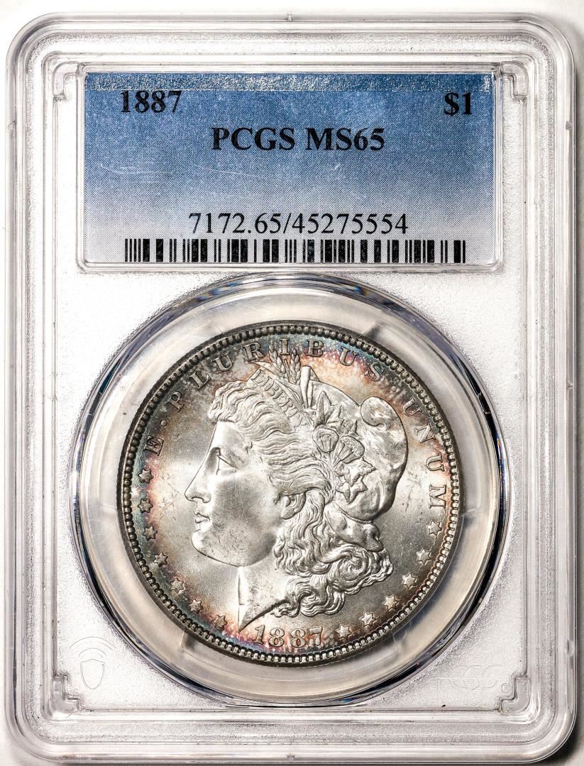 One 1887 $1 Morgan Silver Dollar Coin PCGS MS65 Great Toning. PCGS Graded.