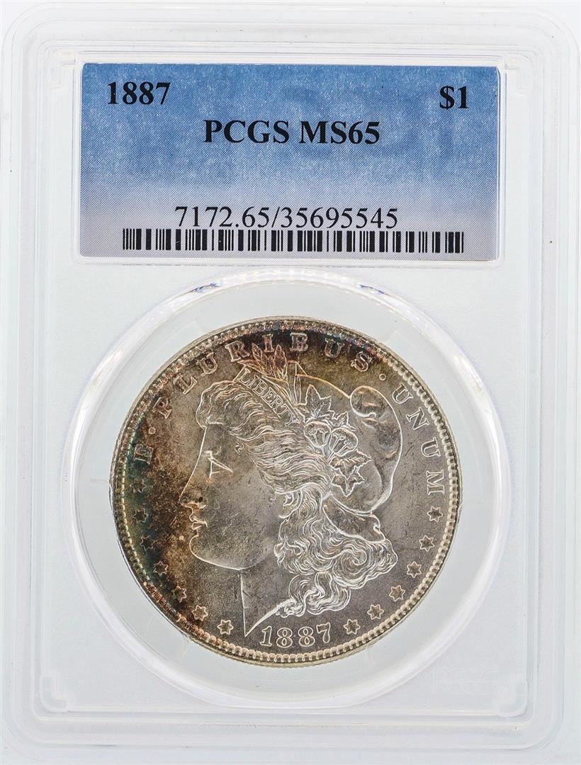 One 1887 $1 Morgan Silver Dollar Coin PCGS MS65 Nice Color. PCGS Graded.
