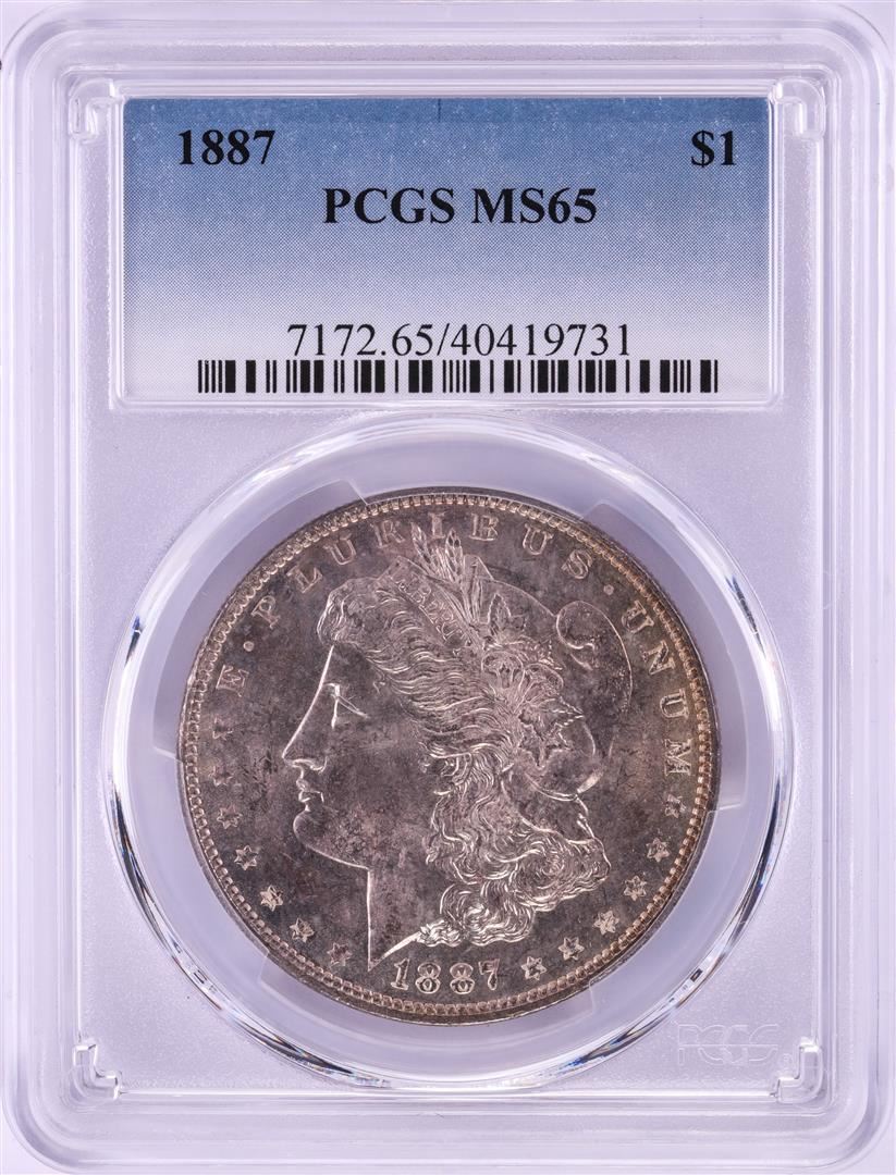 One 1887 $1 Morgan Silver Dollar Coin PCGS MS65 Nice Toning. PCGS Graded.