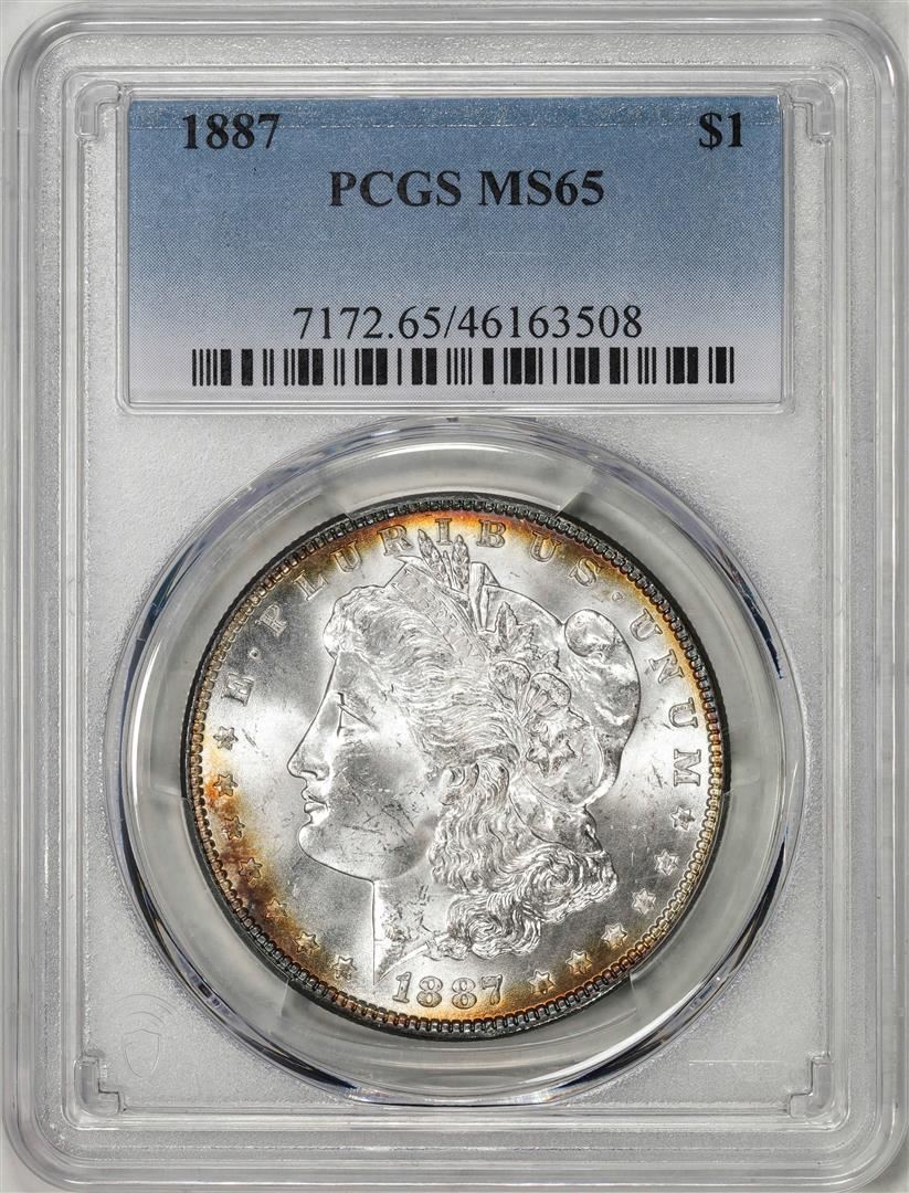 One 1887 $1 Morgan Silver Dollar Coin PCGS MS65 Nice Toning. PCGS Graded.