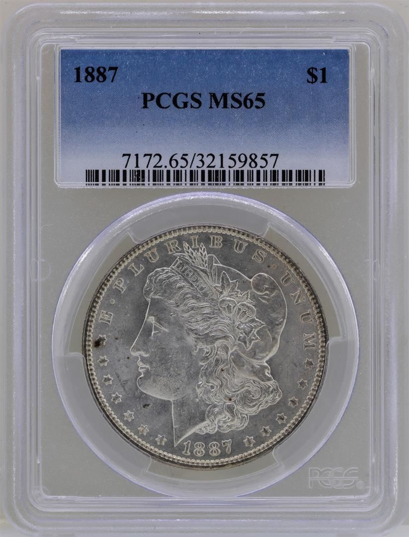 One 1887 $1 Morgan Silver Dollar Coin PCGS MS65. PCGS Graded.