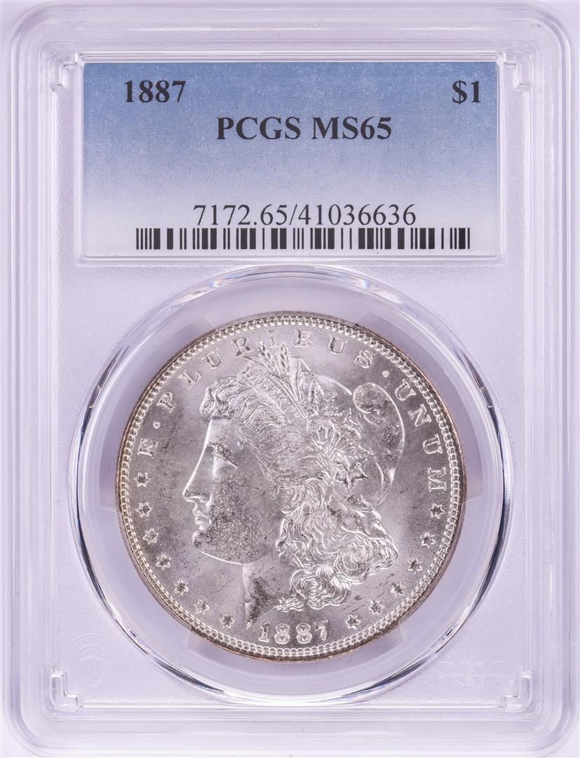 One 1887 $1 Morgan Silver Dollar Coin PCGS MS65. PCGS Graded.