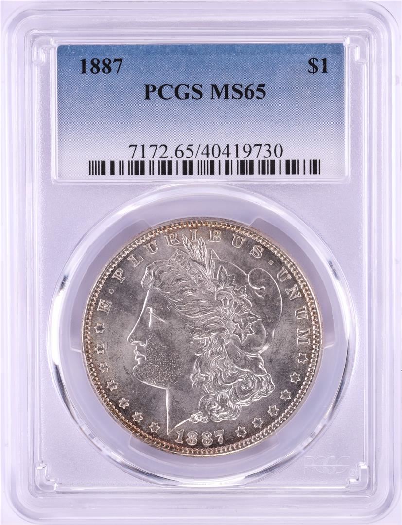 One 1887 $1 Morgan Silver Dollar Coin PCGS MS65. PCGS Graded.